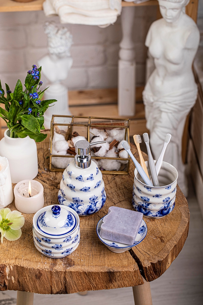 Стаканчик для зубных щёток в росписи Калигиной объем 400 мл. гжель ручная роспись