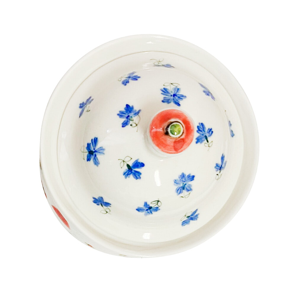 Контейнер для ватных дисков с маками объем 280 мл. гжель ручная роспись