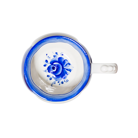 Элина придумала декор росписи чашек, где традиционная гжельская роза помещена внутрь как символ полной чаши, наружная сторона чашки выполнена в современном декоре – синие брызги и бело-синие полоски. Кобальтовые струи, текучие, как водный поток… Элина дала новое виденье на традиционный русский фарфор, и в результате родилась столь экспрессивная роспись. Название коллекции «Полная чаша» символизирует достаток во всех сферах жизни – в доме, в работе и в любви.