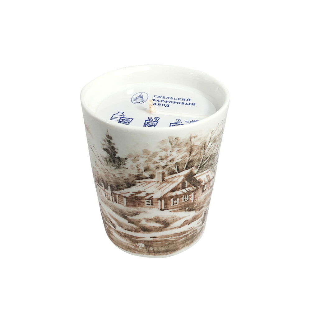 Свеча в коричневой росписи Титова объем 245 мл. гжель ручная роспись