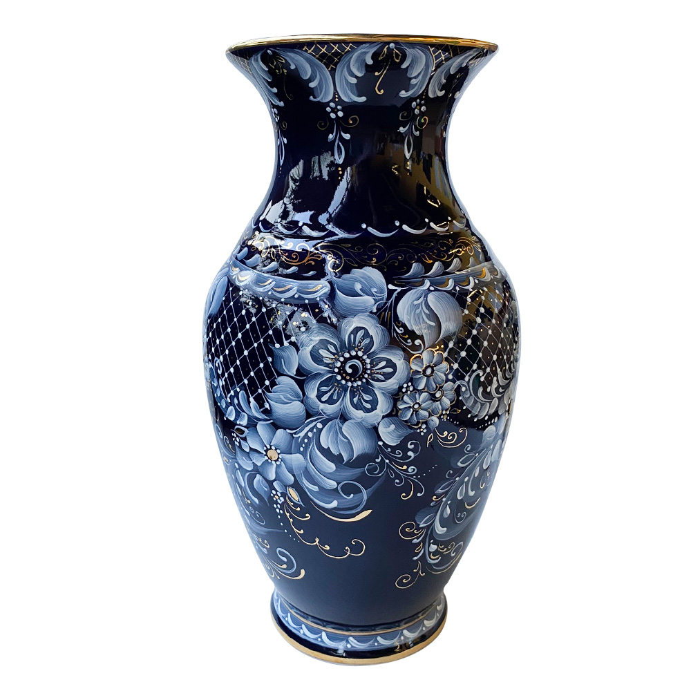 Ваза Роза в росписи Барыкиной объем 2360 мл. гжель ручная роспись