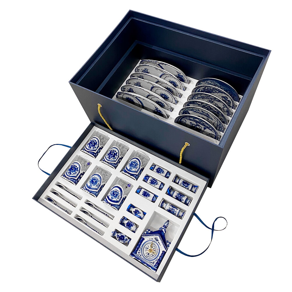 Для росписи мы используем различные техники: традиционная гжельская роспись синим кобальтом, надглазурная и подглазурная роспись цветными красками, отделка золотом или платиной.